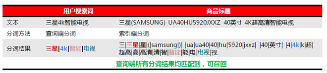 两套分词逻辑:只有索引端分词能完全匹配到查询端分词结果,商品方可召回