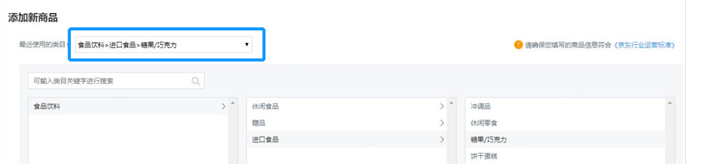商家后台录商品类目选择框如下,录入时务必保证类目准确