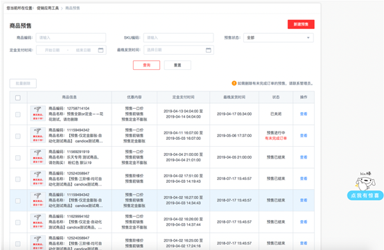 注意:预售开始前可以进行删除即关闭操作,已经开始的预售不能关闭